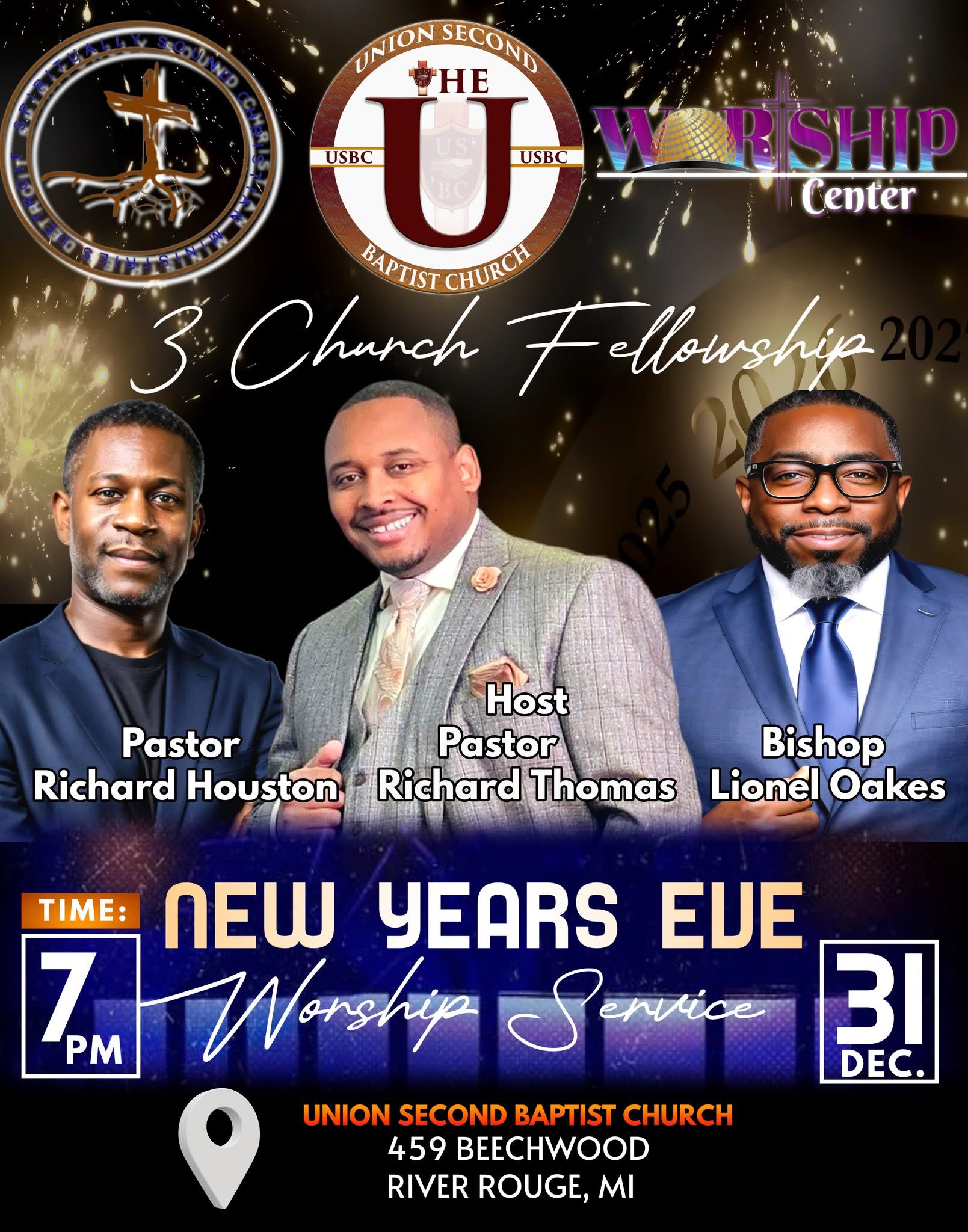 Join us for a powerful and unforgettable New Year’s Eve Worship Celebration on December 31 at 7:00 PM as we come together under one roof to welcome the new year in faith, unity, and praise. Spiritually Sound Christian Ministries, The Worship Center, and Union Second Baptist Church are joining hearts and voices for one incredible night of worship that promises to uplift, inspire, and renew your spirit. This special service will be filled with dynamic praise, heartfelt prayer, and a shared commitment to stepping into the new year with purpose and hope. As we reflect on God’s faithfulness over the past year and anticipate the blessings ahead, this gathering offers a meaningful way to close the year surrounded by community and the presence of God. Whether you are a longtime member or a first-time guest, you are warmly invited to be part of this memorable evening. To show our appreciation, gift bags will be given to attendees while supplies last. Bring your family, invite your friends, and come expectant for an incredible worship experience that sets the tone for a victorious new year. Let’s celebrate together and begin the year united in faith and praise.